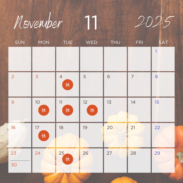 11月のお休みのお知らせです。